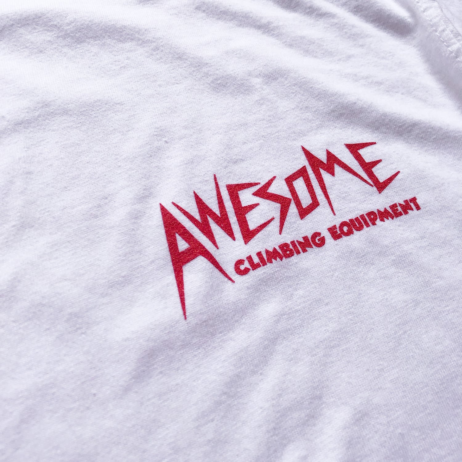 昔の有名なクライミングフィルムのフォントをオマージュ。クライミングの古き良きを知って革新的なクライミングを生み出すクライマー達に着て欲しい1着。背中には映像の中に登場する言葉をイメージソースに。