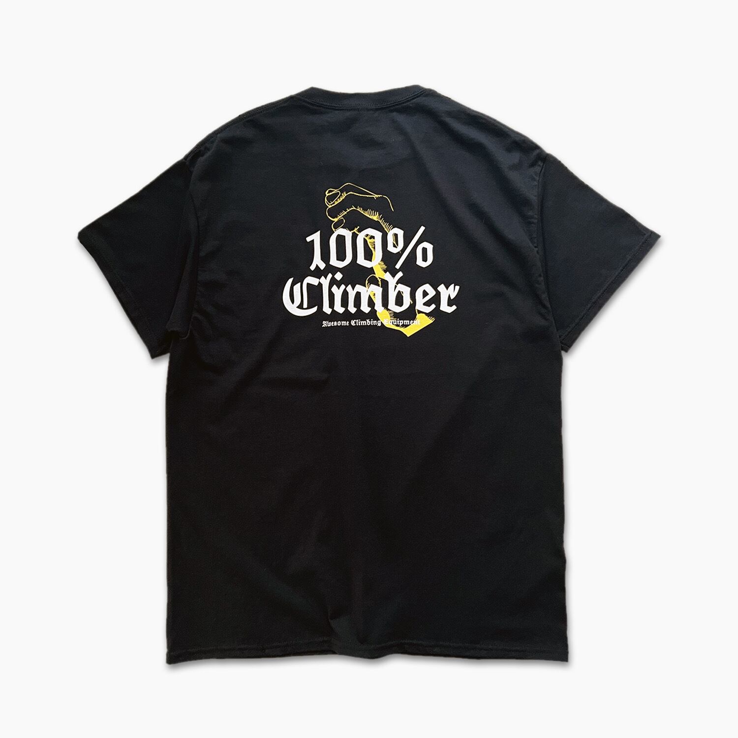 躍動感のあるイラストと『100%climber』という言葉が、ノーマルではないハードコアなクライミングカルチャーを表現したデザイン。80s~90sのスケートカルチャーと同じ雰囲気を持つアウトローアクティビティなクライミングカルチャーを感じてほしい1枚。
